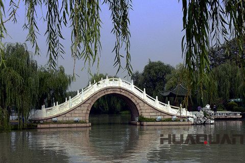 二十四橋在瘦西湖西段,包括二十四橋,春臺(tái)祝壽。清乾隆間稱為"春臺(tái)明月"。二十四橋由漢白玉砌成,四周遍種芍藥,因此又稱為紅藥橋。唐杜牧有流傳千古代詩篇《寄揚(yáng)州韓綽判官》:“青山隱隱水迢迢,秋盡江南草未凋。二十四橋明月夜,玉人何處教吹簫?” 在春熙臺(tái)前有毛澤東手書杜牧詩大理石匾一幅。