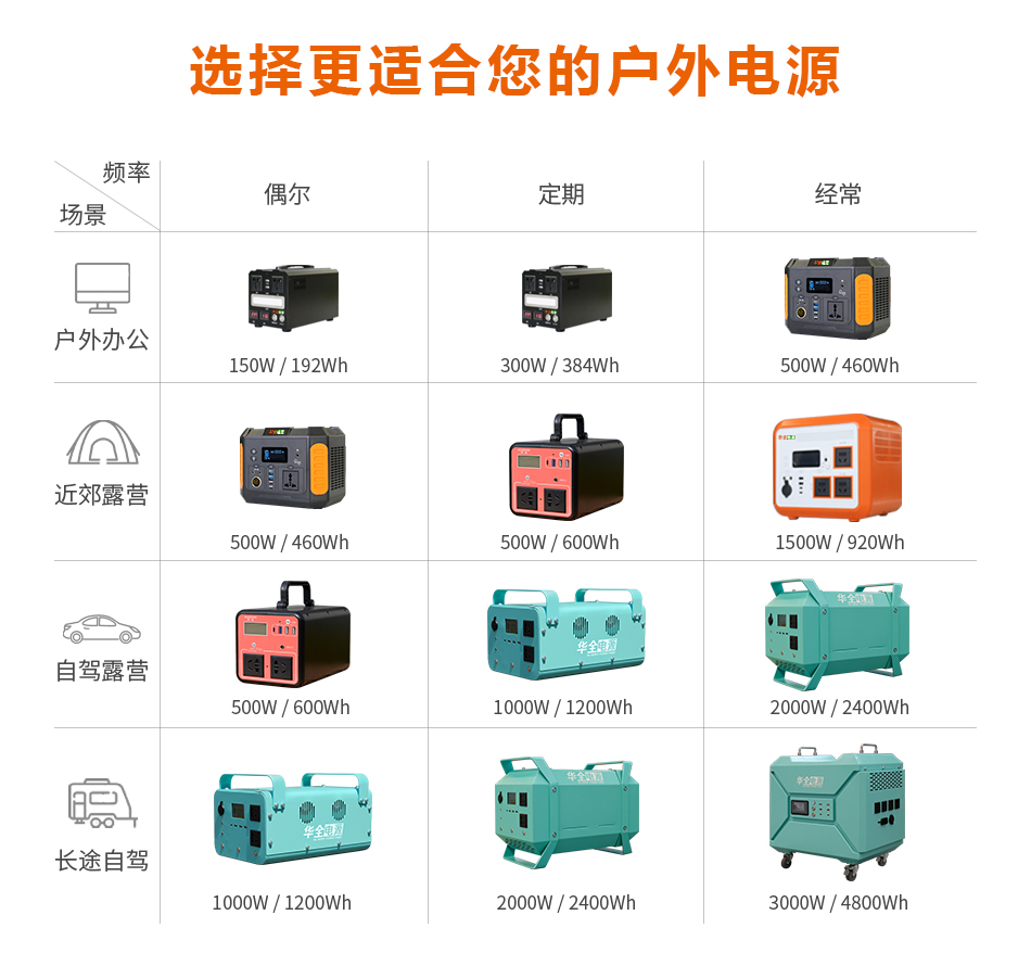 除了以上兩款,下面還有其他不同規格的戶外電源,大家可以根據需求選擇: