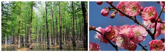 1983年,武漢市開展市樹、市花評選工作。水杉憑借“活化石”和“古老的世界之爺”的美譽被評為市樹;梅花被評為市花。梅花屬薔薇科落葉小喬木,其枝條上有退化小枝,呈針刺狀,幼枝綠色,有時背面呈紅色;葉廣卵形,葉柄短;花瓣及花萼為圓形,五枚一團。花有紅、白、黃等色,清麗芬芳,于深冬開放,經月余至初春凋謝。千百年來松、竹、梅被稱為“歲寒三友”,為世所頌。